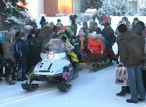 Театрализованное представление для маленьких тюкалинцев прошло на центральной площади. Сказочные и мультипликационные персонажи: Баба_Яга, Снеговик, Серый волк, разбойник, весёлые клоуны вместе с ребятами водили хороводы, танцевали, отгадывали загадки.